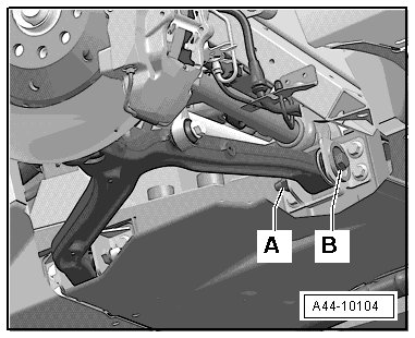 - Remove the lower transverse link to retaining bracket connection nut - A - and loosely install new nut.