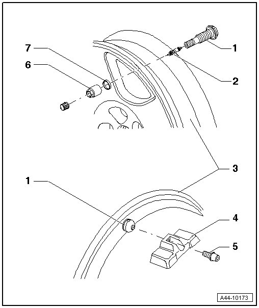 • Remaining battery life, temperature and pressure can be read via diagnosis with Vehicle Diagnostic, Measuring and Information System (VAS 5051 B)