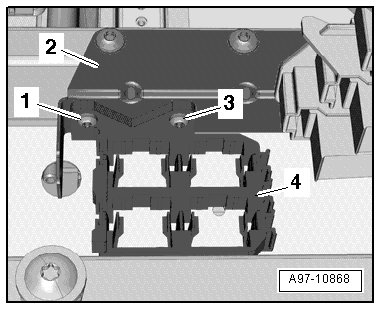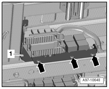 - Remove the right rear relay and fuse panel - 4 - on the frame - 2 -.