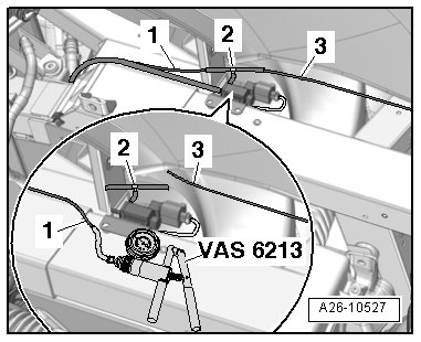 - Connect the Hand Vacuum Pump (VAS 6213) to the affected vacuum hose.
