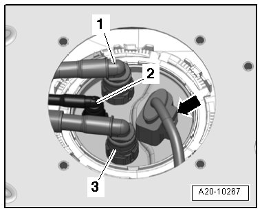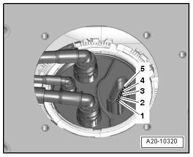 • Tightening specifications, refer to => [ Fuel Level Sensor Assembly Overview ] Fuel Level Sensor Assembly Overview, => [ Locking Flange Cover - Tightening