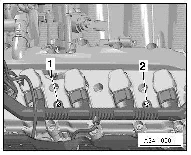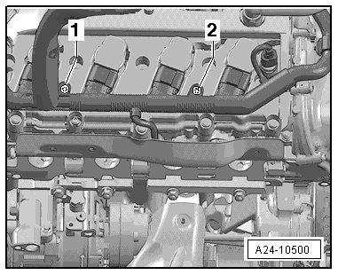 - Remove the bolts - 1 - and - 2 -.