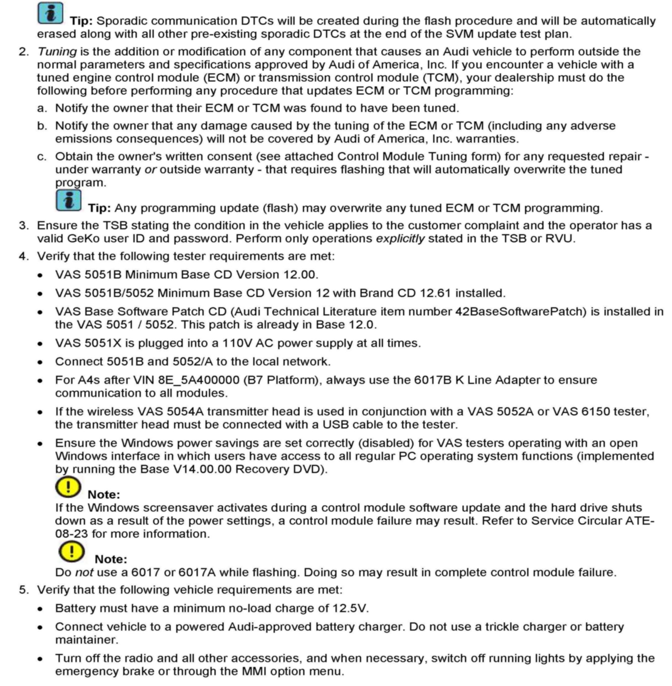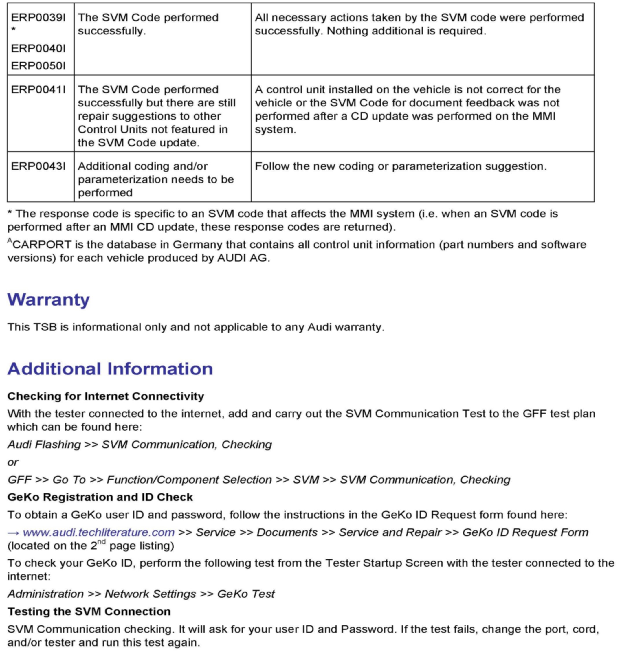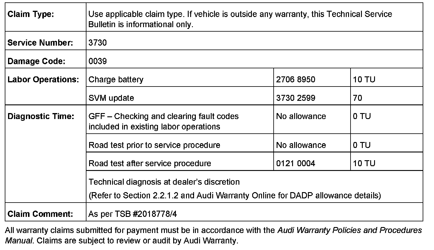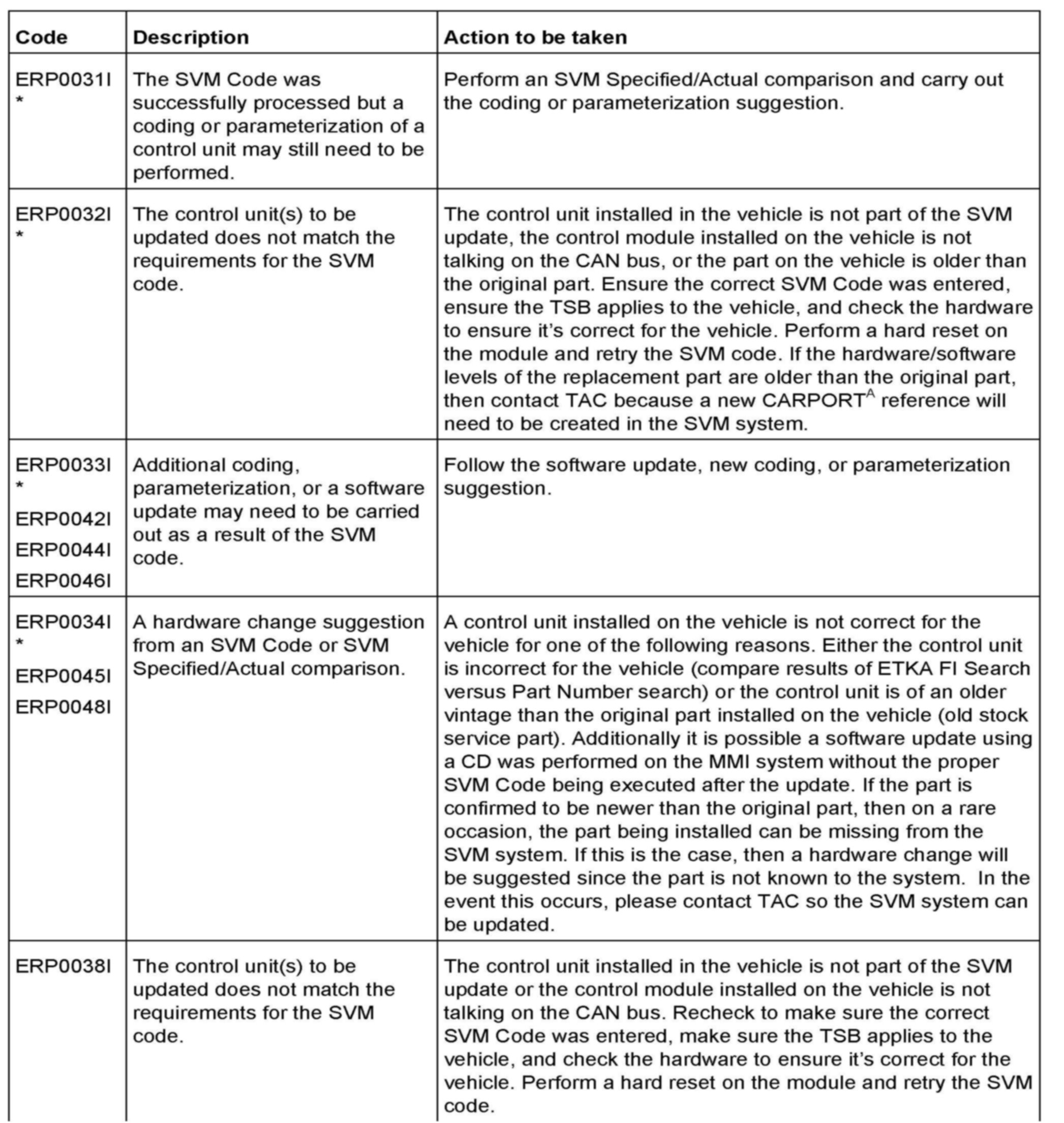 2. Update the engine control unit 1 (J623), engine control unit 2 (J624) and the gearbox control unit (J217) using SVM action code as listed in the table above if necessary.