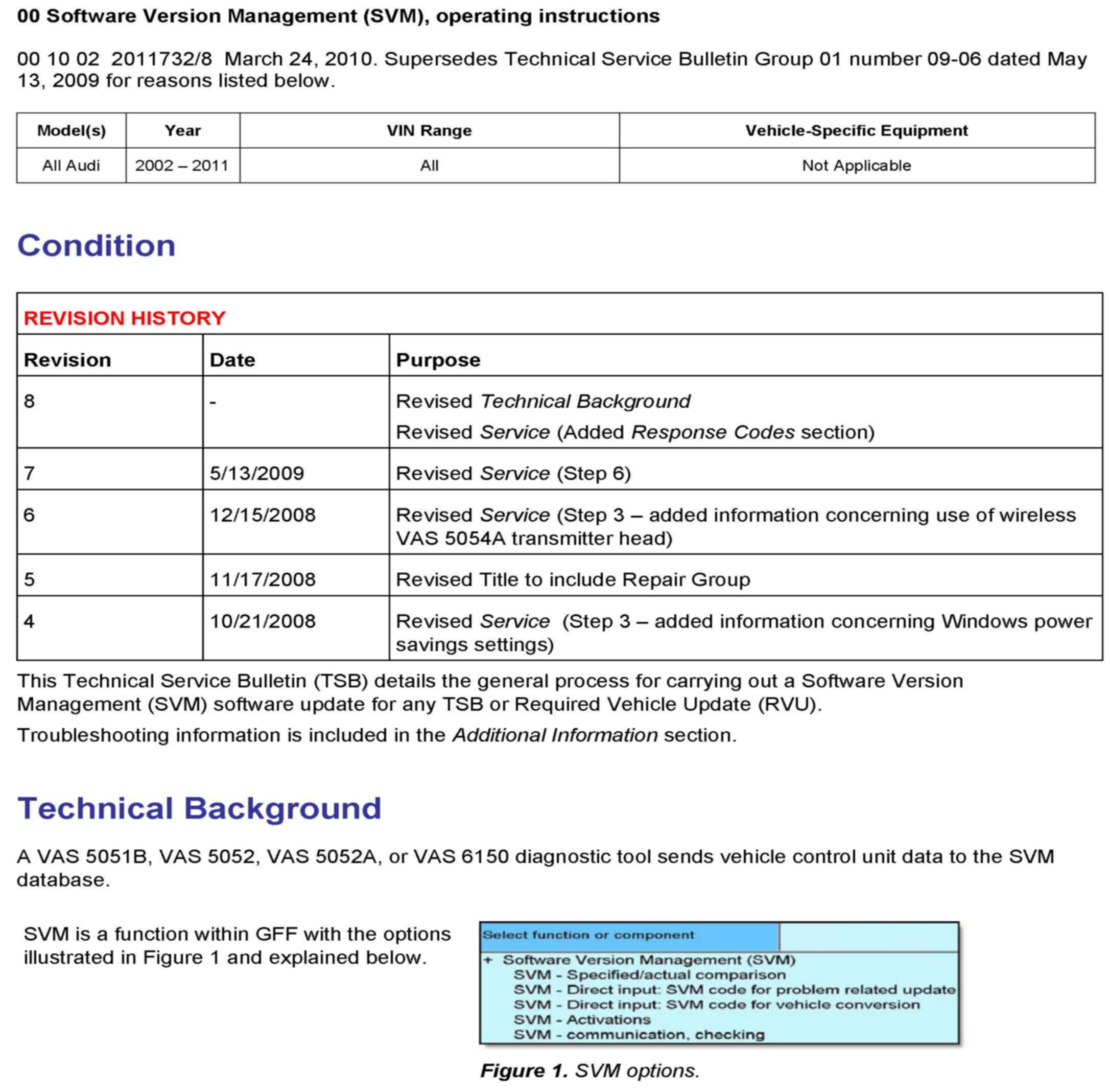 1. Follow all instructions in the attached TSB 2011732 Software Version Management (SVM), operating instructions.