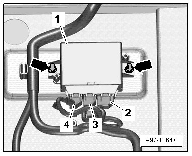 - Remove nuts - arrows - and remove the vehicle positioning system interface control module (J843) - 1 -.