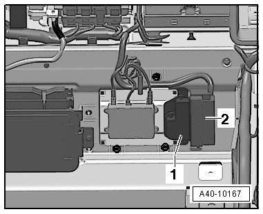 - Disconnect the connector - 2 - and remove the control module - 1 - to the side.