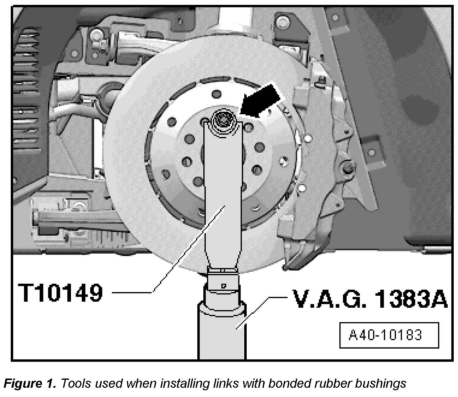 Be sure to start with the service procedures as if replacing an upper or lower transverse link, which begins with a measurement of the vehicle's curb height. For example, as found in ELSA Web> Repair Manual> Chassis> Suspension, Wheels, Steering > Front Suspension> Removal and Installation > Upper Transverse Link with Retaining Bracket As explained in ELSA Web, it is essential to simulate the curb height when reassembling the suspension links with bonded rubber bushings.