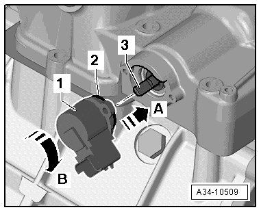 - Turn the Gear Recognition Sensor 2 (G616) clockwise - arrow B - so the bolts can be installed.