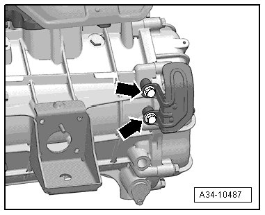 - Tighten the heat shield bolts - arrows - to 10 Nm.
