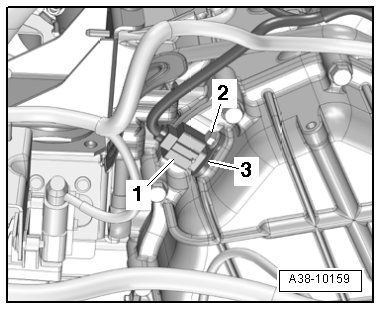 - Remove the bolt - 2 - and the Transmission Input Speed (Rpm) Sensor (G182) - 3 - from the transmission.