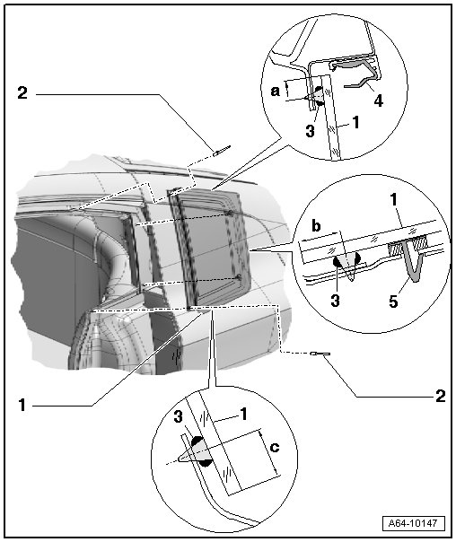 When installing, first press onto the C-pillar with the securing pins - item 5 - and then secure with pop rivets.