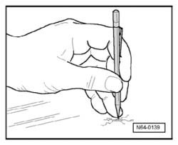 - Mount tool carrier - 2 - with injector - 3 - so injectors rubber seal lies directly over point of impact. Check by looking in mirror.