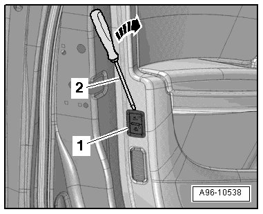 - Remove the passenger compartment monitoring switch (E183)/alarm system -off- switch (E217) - item 1 - back out of trim - 2 -.