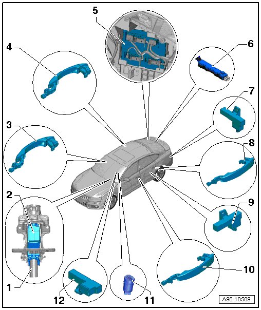Assembly overview, refer to => [ Exterior Door Handle, Keyless Access Authorization Assembly Overview ] Exterior Door Handle, Keyless Access Authorization Assembly Overview