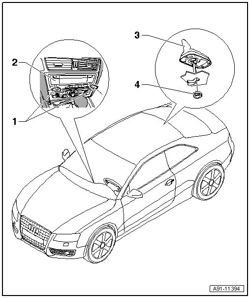• Removing and installing, refer to => [ Information Electronics Control Module 1 (J794) ] Information Electronics Control Module 1 (J794).