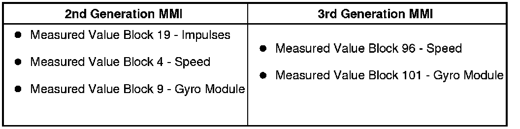 Information regarding the necessary components can be read in the following measured value blocks in the navigation control module: