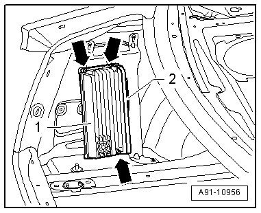 - Loosen the bolts - arrows - on the digital sound system control module - 1 -.and swivel it to the side.