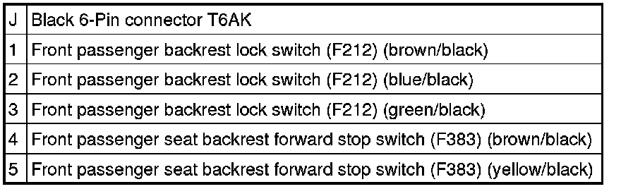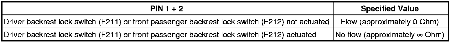 - Check the driver backrest lock switch (F211) or front passenger backrest lock switch (F212) using the multimeter (V.A.G 1526E) and connector lines from the connector test set (V.A.G 1594C).