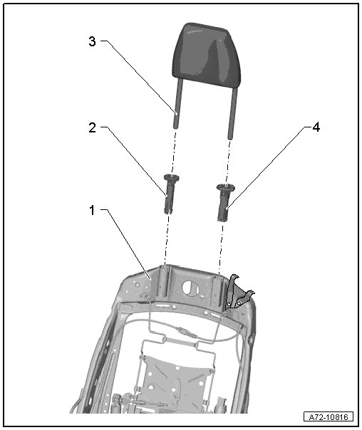 • The assembly overview is based on a standard front seat. The headrest on the manual front sport seat is similar.