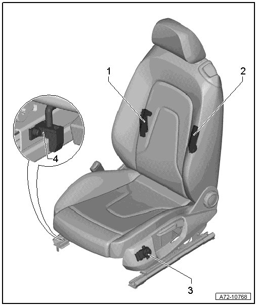 • Versions with seat occupied sensor for passenger airbag deactivation, removing and installing => [ Seat Position Sensor, with Seat Occupied Sensor for Passenger Airbag Deactivation ] Seat Position Sensor, With Seat Occupied Sensor for Passenger Airbag Deactivation