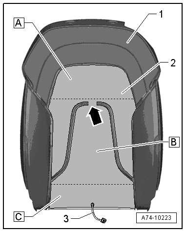• The old backrest heating element remains on the upholstery - 1 - and the new backrest heating element is bonded over it.