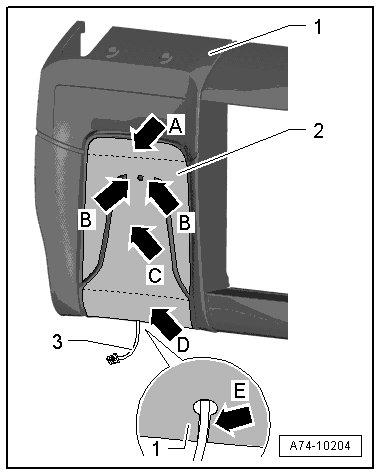 - Pull the wire - 3 - through the slit in the upholstery - arrow E -.