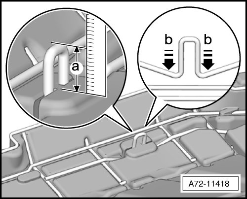 - Check dimension - a - on both sides of the seat frame, from the padding to the upper edge of the wire frame. Dimension - a - must be 16 to 22 mm.