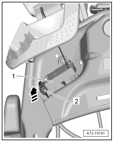 - Unclip the mount - 1 - from the backrest frame - 2 -.