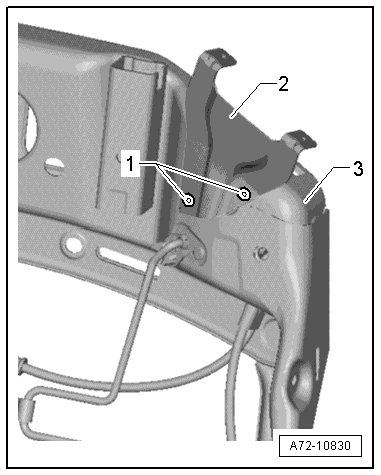 - Remove the support plate - 2 - from the backrest frame - 3 -.