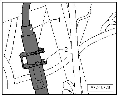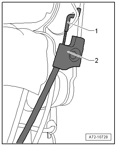 - Lock the entry assistance release cable A - 1 - with the clip - 2 -.