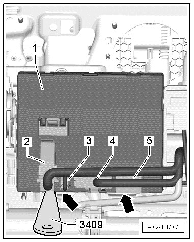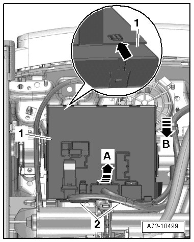 - Carefully tilt the control module - 1 - in the direction of- arrow A - out of the retainers - 2 -.