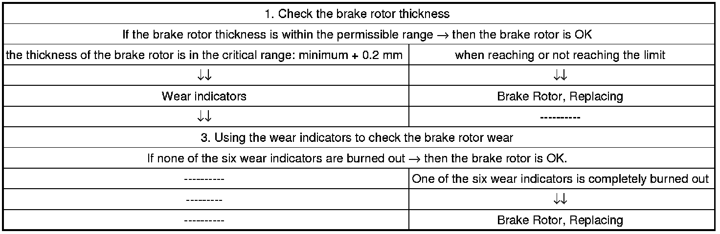 • If one of the three defined wear limit is reached, then the brake rotor can no longer be used. Replace the brake rotor.