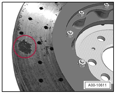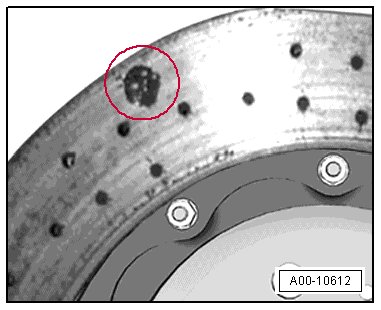 • The following two illustrations show burned out wear indicators. In this case the brake rotor must be replaced.