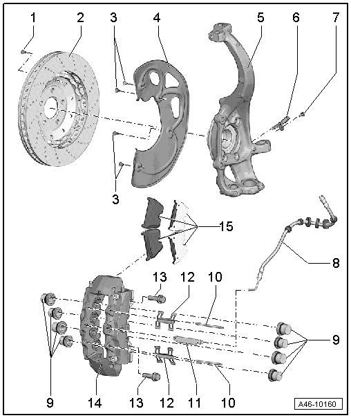 - Hold the brake caliper steady and remove the bolts - 13 -.