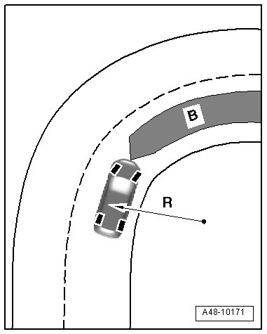 This is necessary to determined which vehicle is driving in the same lane, or which vehicle has been selected for the selected distance. The distance regulation control module then determines the lane where additional input signals are necessary: especially from the rotation rate sensor, the speed sensors and the steering angle sensor. The signals then can be evaluated to determine the curve of the road. This "virtual" lane B is a result of the actual road curve around which the vehicle is driving "R" and a determined average lane width. The nearest object in the closest lane that the radar does not see will then be a virtual object for the distance control.