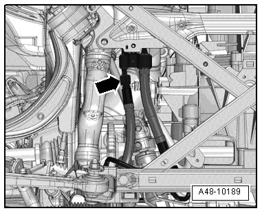 - Disconnect the power steering hydraulic pipe - arrow -.