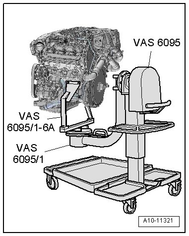 • Engine and Transmission Holder (VAS 6095) with Universal Mounting (VAS 6095/1) and Bracket for V8 Engine (VAS 6095/1-6A)