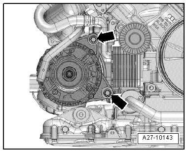 • Likewise replace the engine mount on the opposite side, check the retaining plate and replace it if necessary.