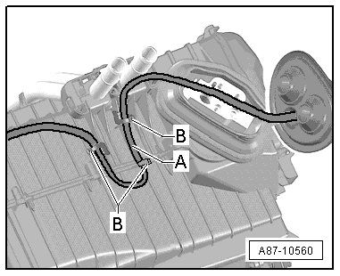 - Install the A/C unit - A - and the components also removed with the A/C unit (wiring harness "A/C unit", grommet on the evaporator refrigerant lines, etc.) in the vehicle