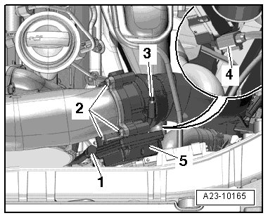 - Remove the air guide hose and the hose clamp - 3 -.