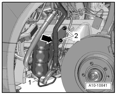 - Remove the bolts - arrows - and then move the coolant reservoir to the side with the coolant hoses - 1 - and - 2 - still connected (not Audi RS 4 and Audi RS 5).