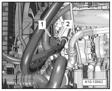 - Remove the coolant hose - 3 - from the coolant reservoir (not Audi RS 4 and Audi RS 5).