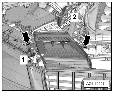 - Remove the left and right air guide - 1 - from the intermediate flange - 2 - on the air filter housing.
