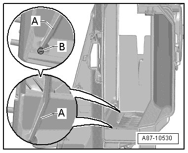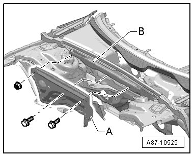 - If equipped and necessary, remove the suspension strut dome - B - (for example Audi A5 Coupe, not necessary for example on the Audi Q5).