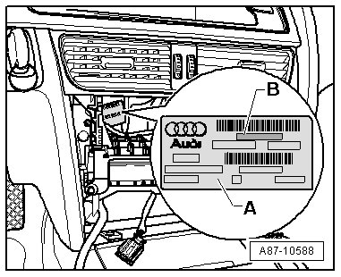 • The part number - B - on the decal - A - can be read when the CD changer is removed (depending on the vehicle equipment level). Refer to Electronic Parts Catalog (ETKA).