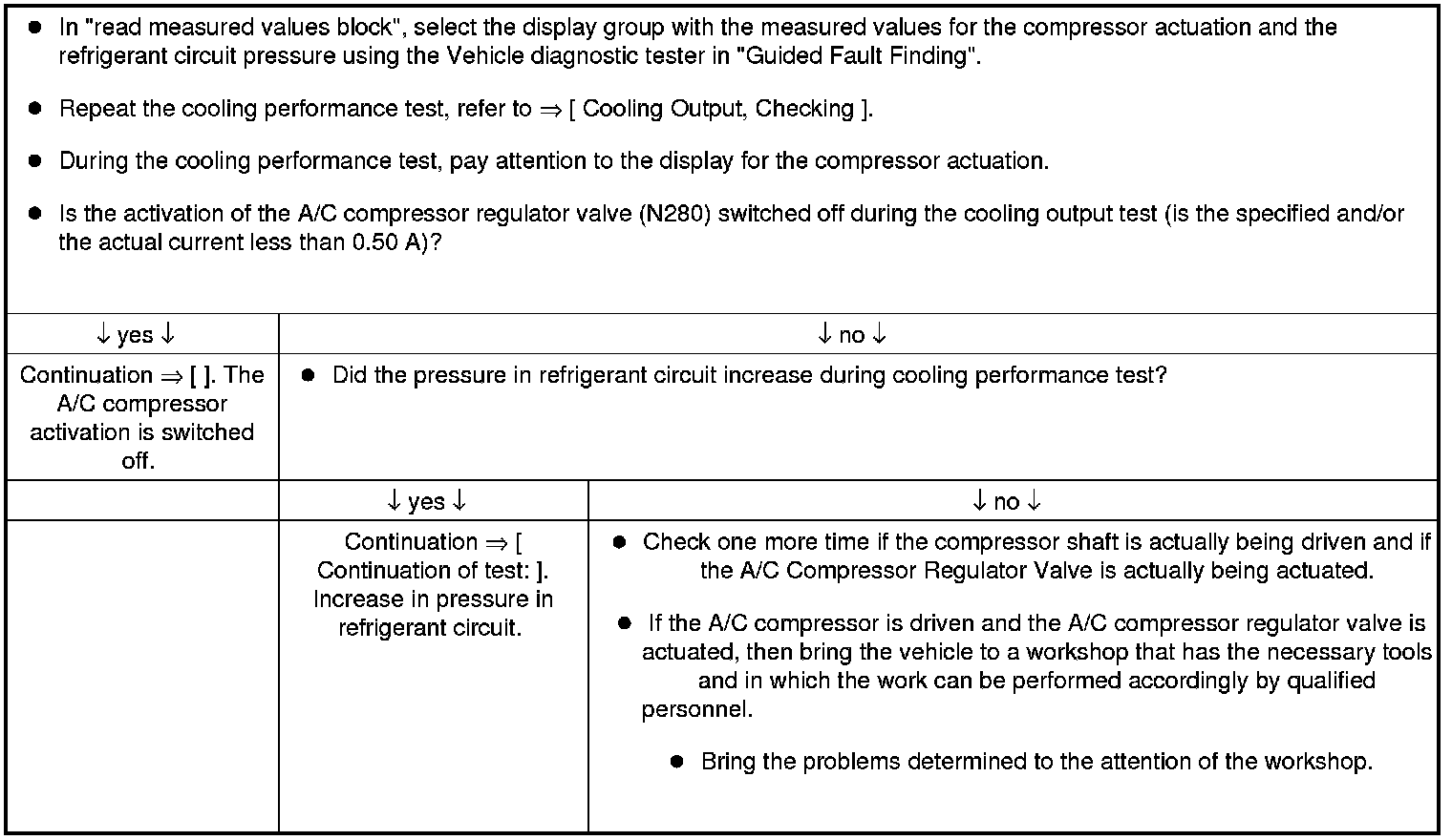 Continuation of test: "Pressure in refrigerant circuit increases"