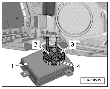- Disconnect the adapter cable - 2 - and the electrical connector - 3 - on the HID headlamp control module - 1 -.