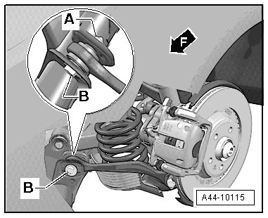 - Remove the nut - A - of threaded connection tie rod/subframe, and screw on new nut until stop.