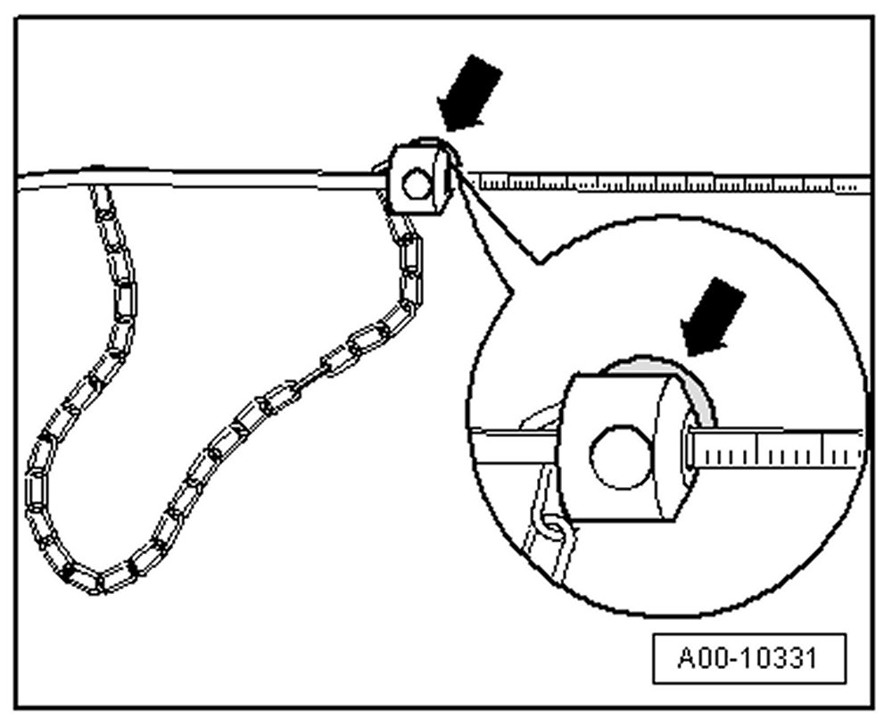 - Adjust the value on the oil level display test on the upper scale -arrow- by opening the knurled screw and moving the adjusting ring.