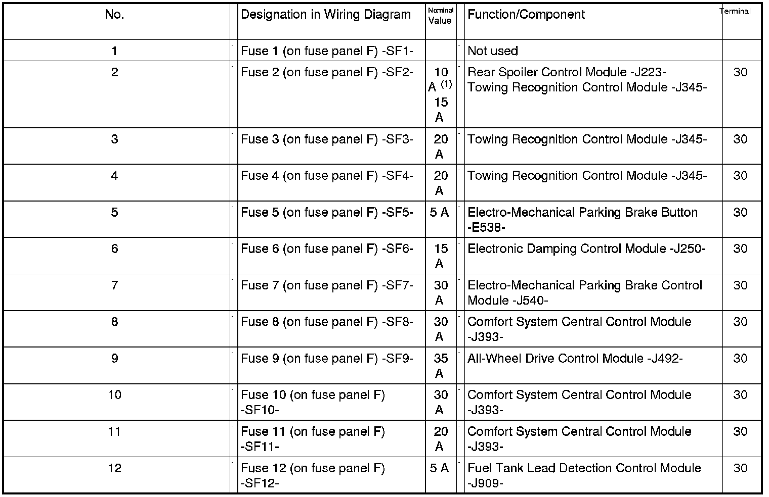Single Fuse on Fuse Panel F -SF-